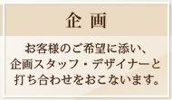 お客様のイメージをご希望に通りの商品になるまで、ヒアリング、イメージ画の提案、 サンプル提案など適切な企画提案を行います。